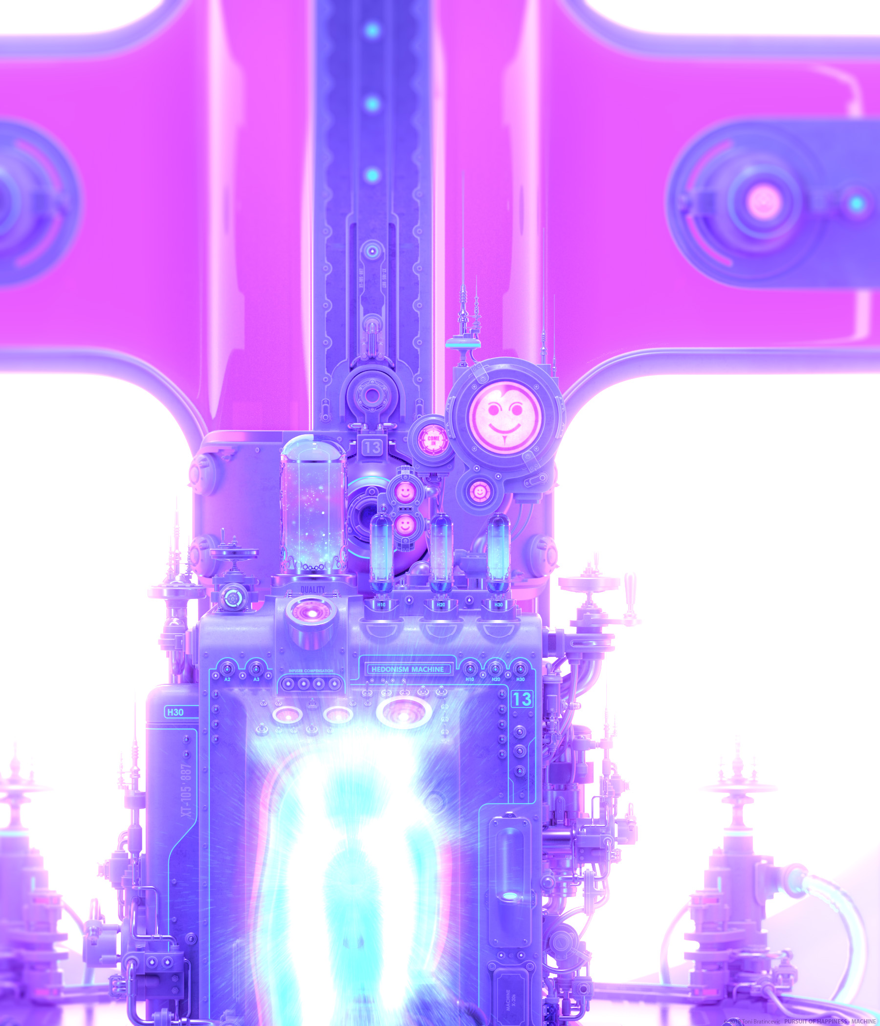 Technically this project was not a huge leap forward for my knowledge. Nothing was standing in my way, it was a very fluid experience working on it. Machine in the back is build for subdivision, so I may say that was challenging but also fun process. Final renders were done with Redshift render, and compositing with Blackmagic Fusion. What's new here is that I tried to make it in a form of small coming, just to try something different and fresh.