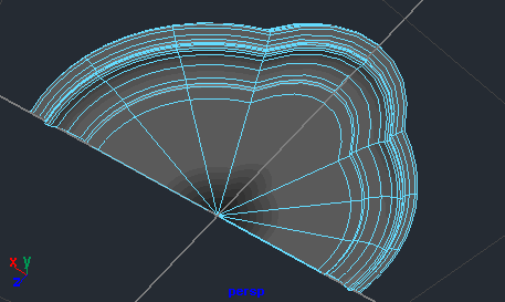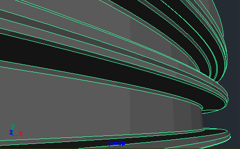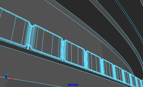 After I made the separate polygon in the bottom part of this structure, I went to polygon selection mode, selected this polygon and done the extrusion (Edit Polygons > Extrude Face) three times. First time I just scaled down the polygon so that I get thicker edge. Then for the second extrusion I also scaled it down, but just a little bit and moved it a little bit inside. The second extrusion was made to get the smoother edge.