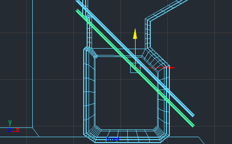 Back to the scene from above. Go to the top view and position this part of the fence in its initial position. Be sure to rotate it to the right angle so that the fence follows the direction of the structure. Use the edges of that structure as the reference when rotating the fence from top.