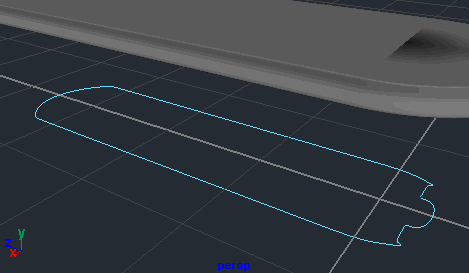 After that, create the curve from the top, but not with CP Curve Tool. Do this with the same trick as we did for the fence ... the four round edges made with 90 degree circles, attached together and at the end closed. Project this curve from the top onto the shape we have created before.