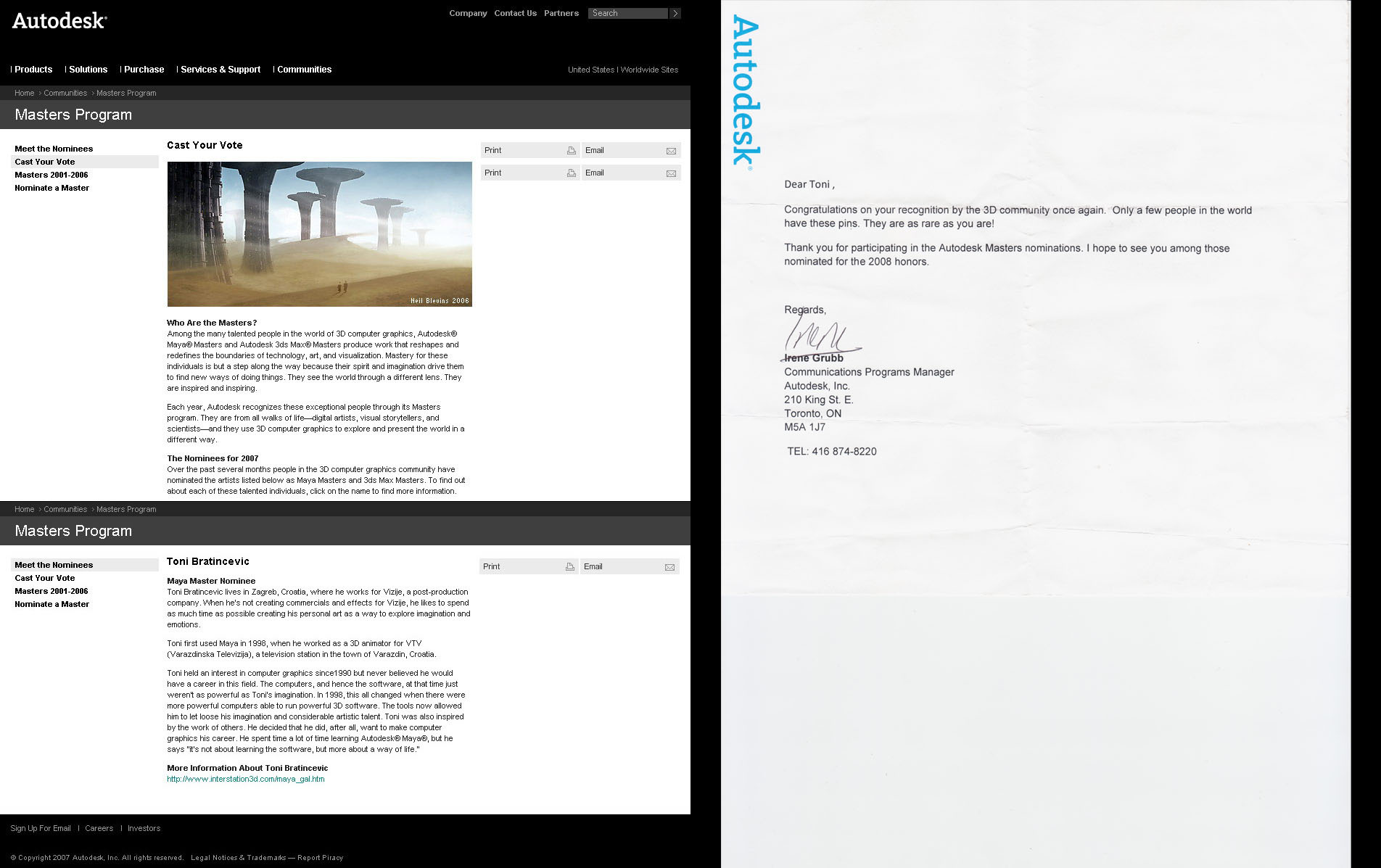 AUTODESK Maya Master Nominee - 2007 - [IMAGE] - I didn’t won the master award but it surely is a big deal to get included in the nominees