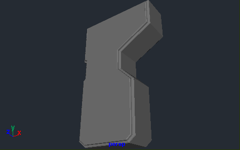 As you can see, it was easy to do this, just a few clicks and that's it. One more important thing ... I recommend to do this in separate scene/file and later when it is finished you just import it to the original scene where you blocked the image. Now the green structure that holds the yellow one. The big pipes are made in similiar way as the object above. I created one Nurbs circle, and I have used the same path curve as the one above but a little bit scaled up. This is easy to do, so I will not explain this through the images. The stuff that I will show you is the model that holds the pipes and on which magenta stuff are attached. Let's see these few simpe steps to get similiar shapes. First thing that I have done is that I created the profile curve. As before I have used the CP Curve Tool which was set to linear (option menu in case you forgot). I just draw the profile curve as in picture below. This curve should be closed. I have used the linear curve to get the strong sharp edges ... which is what I want for this model.