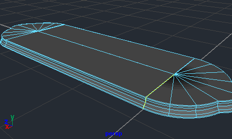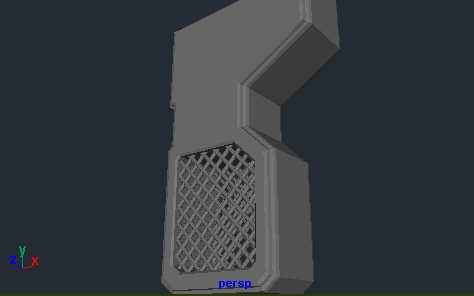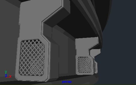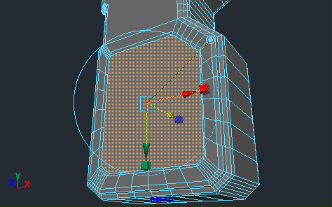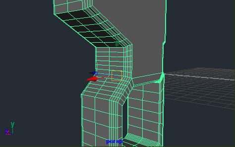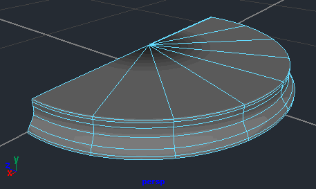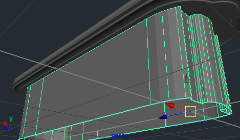After I made the separate polygon in the bottom part of this structure, I went to polygon selection mode, selected this polygon and done the extrusion (Edit Polygons > Extrude Face) three times. First time I just scaled down the polygon so that I get thicker edge. Then for the second extrusion I also scaled it down, but just a little bit and moved it a little bit inside. The second extrusion was made to get the smoother edge.