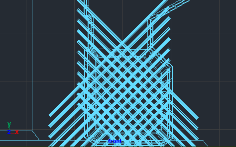 Now the other side. Just select all of the cylinders that you have created, group them together (Ctrl+G), duplicate the (standard way ... Ctrl+D) and set scale in X direction to -1 to get the mirror effect. After you have done this, you will probably want to duplicate few cyilinders at the bottom to fill up the grid completely.