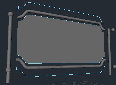 Let's see a simple example of this in picture below. The model is separated a little bit just to show you what it is made of. The pipes on the top are made with the extrude tool. The path and profile curve are below. For profile curve I have created one nurbs circle and for the path curve I have used CP Curve Tool but this time set to degree 3 named cubic. The parts on the left and right are simple cylinders and spheres and the big flat part where grid will be (simulated using textures) is made by lofting the two path curves for the pipe on the top and bottom. The loft tool is Surfaces > Loft .. you just need to select two curves and click on this.