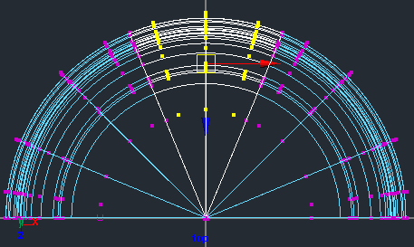 It's time to get rid of the parts we don't need. Guess what ... we will use Cut Tool again. ;) But first you have to select all of the cylinders and combine them together in one mesh so we can cut it in just few passes and keep them as one object. So select all of them and Polygons > Combine. Now go to the Edit Polygons > Cut Faces tool > options and make sure that Delete the cut faces is checked. Now cut the combined mesh like I did in the picture below.