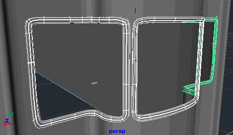 If the default extrusion of 1 unit is not sufficent, you can increase that in the Channel Box on the right ... but you need to have history. Now let's create the windows. As always you have to draw a curves. Switch to front view ... but ... the front side of this vehichle is on the other side and when you switch to front view we can not see it. Well, in viewport go to the View > Predefined Bookmarks > Back and guess what ... we have the view from the other side on which we can easily draw and project the curve. Now draw the curve with the CP Curve Tool like I did in the picture below (green - left curve) but do not close it (check my curve). Once you draw it go to the Edit Curves > Open/Close Curves and the curve will be closed.