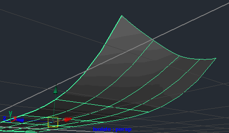 Now select this curve and go to the Surfaces > Extrude Options. In option menu set the Style to Distance, Direction to Specify and Direction Vector to Y. Other options should be set to default values, but you know how to do that already. After you click extrude the curve will make a surface similiar to this one, which is what we want: