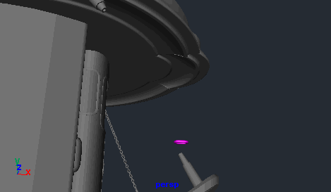 Magenta part - the chains The part colored with magenta is very small in the picture above, so if you didn't saw it clearly ... see it again. As you saw it you will recognize the chains that connect the top part of the ship with the bottom. Remember the tools I mentioned before when I told you to create the fence by yourself ... the attach to motion path and create animated snapshot. Well this time I will take care of the explanation how to use them. ;) But, first step will be to create the single chain element which will be copied x times to get the complete model. There is a simple way to create one element of the chain. But first hide up everything .... the easiest way to do this is to create layer which can be switched off and on everytime you want. Now go to the Create > Polygon Primitives > Torus - options. When options menu appears, change the Subdivision Around Axis from default 20 to 18 and change the Section Radius to 0.35. Click create, and you will get the torus that looks like this: