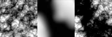 Combining Procedural and Image maps Another important part when it comes to texturing is to learn how to efectively combine procedural textures with image maps. Both of these texturing types have pros and cons. For example procedural textures consume very little memory compared to image maps. The image maps, on the other hand, can be easily controled ... just add details where you need them, while procedurals can be very hard to control. But, there are several ways to combine them. The simplest one will be to blend them together but there are also more sophisticated ways. For example you can use image map to control the appearance of procedural texture by mapping the image map on one of channels in procedural texture. This can be sometimes very usefull since you can have low resolution image map which controls the procedural texture. This way you can get infinite details of the procedural driven by the connected image map. Let me show you the example of this: The texture on the left is the 3d procedural texture from maya. It is a 2d fractal texture with inflection turned on. The image in the middle is the simple image texture that I have painted in maya (3d Paint Tool). And the last picture is the combined version of these two ... the image was attached to the Threshold channel of the 2d fractal texture: