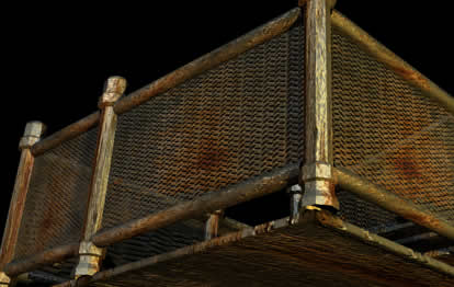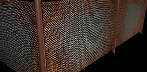 Yes, this object has modeling and texturing flaws, but ... as I was talking before it is far away from camera and pretty dark so why spend time on it when it will look nearly the same as it does now. ;) The simplest way to get the fence grid like from picture above is to map the transparency channel with some image file. In this case I have used the simple element which was repeated many times to get a look that I wanted. The image I have used to map the transparency was this one: