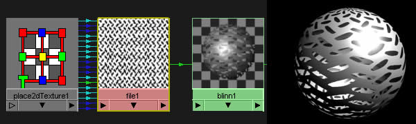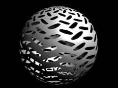 As you can see, it is simple black and white image. What's special about this texture is that it is seamless which means it can be repeated ten or whatever times (in place2dtexture node) and you won't see the seam between them. Now, if you connect the file node to the transparency channel of the blinn node and attach it to the object, like this sphere below, you will get the render similar to this one.